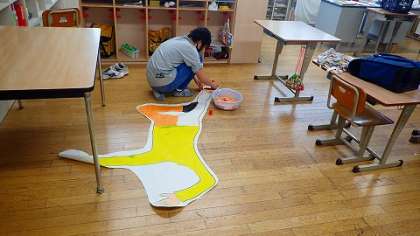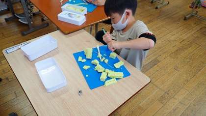 粘土を使った造形遊びや,「人間うつし絵」の作品づくりをしています。