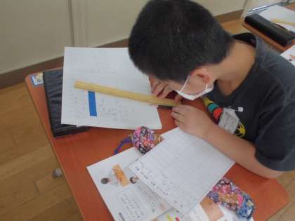今日は,まっさらな30センチメートル定規を使って10センチメートルをこえる身の回りのものを図る学習をしました。