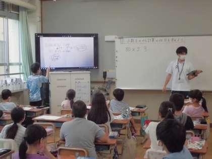 5年生は,算数の学習で「小数のかけ算」に取り組んでいます。