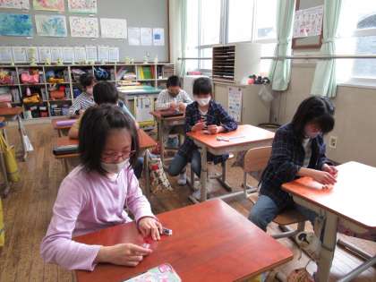 まず電気や電池といった似た言葉の意味を確認したり,4年生になって新しく使うモーターについて説明したりしました。