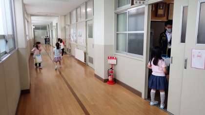 1年生の子どもたちが,生活科の学習で学校たんけんをしています。