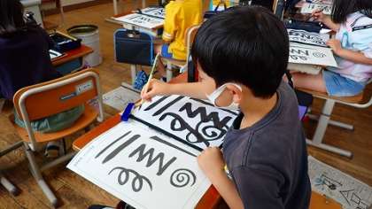 3年生になって初めての習字の学習です。担任の先生方ら,用具の名前や筆の持ち方などを教えてもらった後,実際に筆でいろいろな線をかいてみました。これから文字を書いてみるのが楽しみですね!