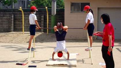 自分のできる技の組み合わせや連続技に挑戦したり,ちょっとがんばればできそうな技に挑戦したりしています。