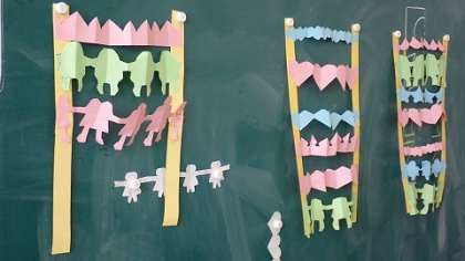 1年生は,図工の「ちょきちょきかざり」の学習をしています。
