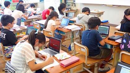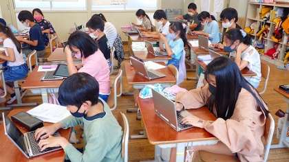 待っている間は,GIGA端末を使ってタイピング練習をしています。みんな集中してがんばりました。