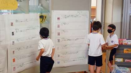 今年も選書会を実施することはできませんが,その代わりに,学校司書の先生が選んでくださった本の中で読んでみたい本を選ぶ「ブックリクエスト」を行っています。2年生の子どもたちが,興味のある本を選び,シールを貼っています。