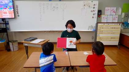 低学年は,〇のつく言葉を学習した後,絵本の読み聞かせやビデオを見て学習を進めていました。
