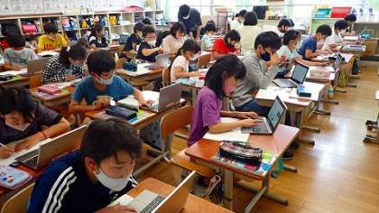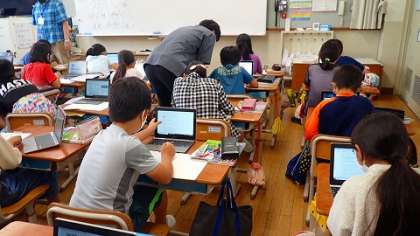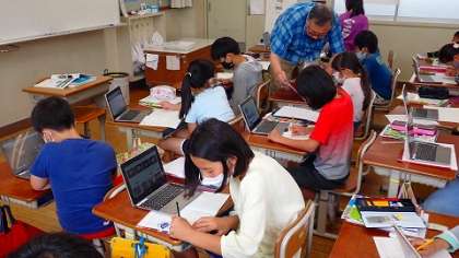 今日は,GIGA端末を使って,あたたかい気候である沖縄の文化について調べ学習に取り組んでいます。「食べ物」や「行事」,「言葉」など,様々な文化について調べていました。