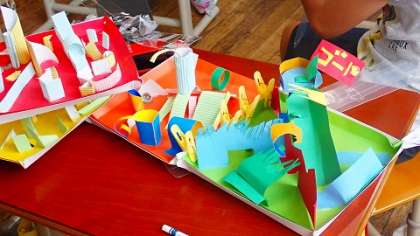 4年生は,図工の「コロコロガーレ」の作品づくりに取り組んでいます。