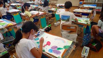 3年生は,図工の「わたしの6月の絵」の作品づくりをしています。