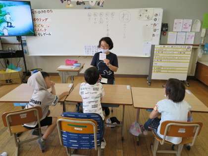高学年の算数では,レジと買物する人に分かれて,実際に本を買う体験をしながら,電卓を使った計算の仕方を勉強していました。低学年は,「ね」のつく言葉をクイズなどで楽しく学習しています。