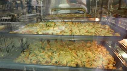 「夏野菜のボロネーゼ」は,年に一度きりの献立です。牛ひき肉,たまねぎ,にんじん,じゃがいも,なす,ズッキーニ,チーズが入っています。この他に,さわやかな香りが特徴のハーブの一種の「オレガノ」も入っています。じゃがいもはいちょう切りに切った後,オリーブオイルをふりかけ,スチームコンベクションオーブンで一度焼いています。時間と手間をかけてくださった,とてもおいしい献立でした。