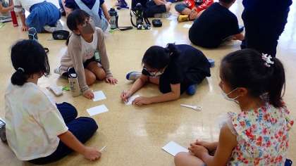 先輩たちの制作した「幡」を見て刺激を受けた6年生たちは,思い思いのデザインを考えていました。自分たちのオリジナルの「幡」づくりのスタートです。