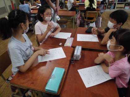 京都環境保全公社の方に来ていただき,出前授業をしていただきました。1時間目は,ワークシートを使って,「ごみって何かな?」と考えました。食べ残し,食べたお菓子の袋,うんち,遊ばなくなったゲーム機など…たくさんの項目からごみについて考えました。