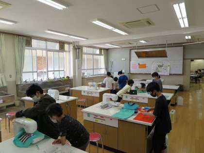 6年生は,家庭科でミシンを使って手さげかばんを製作しています。