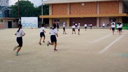 夏休みに入りましたが,陸上部の子どもたちが朝の涼しい時間に練習をしています。
