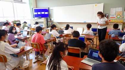 担任の先生が用意した教材を使うために,GIGA端末を使って「ロイロノートスクール」にログインしています。これから,このようにGIGA端末を使って学習する機会がどんどん増えてくることでしょう。