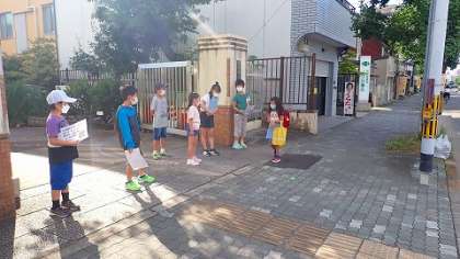 千本通側の通用門でも,子どもたちが元気に「おはようございます」とあいさつをしています。