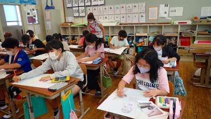 6年生は,図工の「言葉から想像を広げて」の学習をしています。