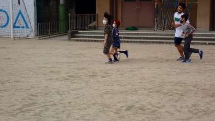 コスモス学級は,「おはようタイム」で運動場をランニングしています。