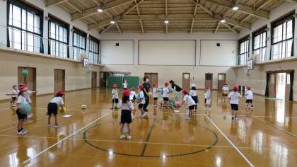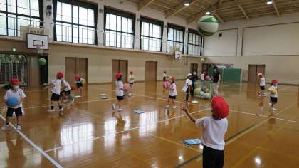 今日の勉強は,「ボールあそび」です。空中に投げたボールをうまくキャッチする練習をしました。投げた後に拍手をしたり,くるっと一回転したりしてからの難しいキャッチにも挑戦しました。