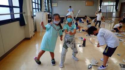 2年生は,図工の「しんぶんしと なかよし」の学習をしています。