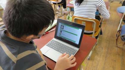 授業では,月と太陽の関係を復習した後,GIGA端末を使って月について調べを進めていました。GIGA端末を学習道具としてどんどん活用している姿が見られます。