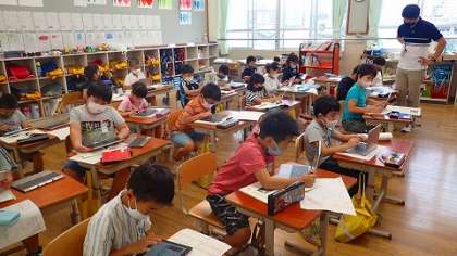 今日は,ロイロノートスクールを使って,じゅういさんの1日の様子を整理しています。写真に説明文を組み合わせ,できあがったものを使って発表する予定です。