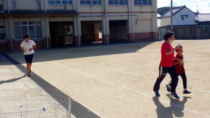 音楽に合わせて運動場でランニングをしています。10月に入って暑さも和らぎ,体を動かすのが楽しい季節になってきました。
