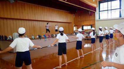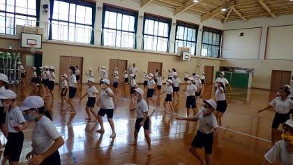 学年合同での練習ができるようになり,5・6年生の練習も本格的にスタートしています。音楽に合わせた素早い動きや細かなステップがあり,当日,どんな演技を見せてくれるのかが楽しみです。