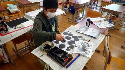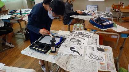 6年生は,図工の「墨と水から広がる世界」の作品づくりをしています。