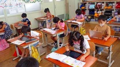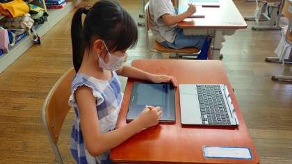 今日は,デジタルドリルを使って,漢字の書き取りをしています。タッチペンを使って漢字を書いています。正しい持ち方,よい姿勢で書くことができています。1年生も学習した漢字が増えてきました。定着のために,毎日復習をがんばってほしいと思います。