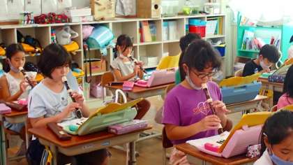 「あの雲のように」をリコーダーや鍵盤ハーモニカで演奏しています。指づかいにも慣れ,なめらかに演奏できるようになってきました。