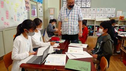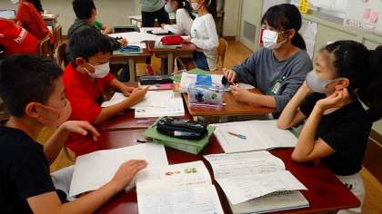 西陣織以外にも,日本にはたくさんの「伝統文化」や「伝統産業」があります。グループごとに関心をもったものをテーマにし,調べ学習に取り組んできました。国語の「日本文化を発信しよう」の学習と関連付け,調べたことを紹介するパンフレットづくりに取り組むことになりました。グループで相談し,分担を決めています。