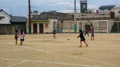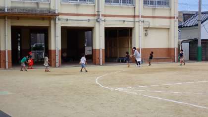 放課後の運動場の様子です。6時間目に運動場で体育の授業がない日は,運動場は1・2年生の貸切になります。広い運動場でのびのびと遊んでいました。