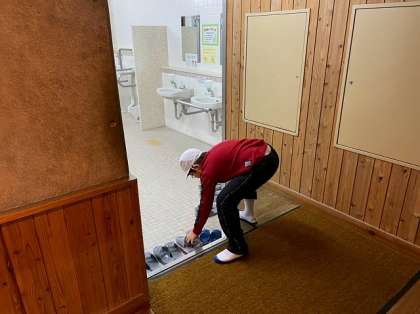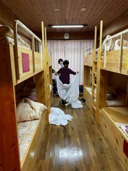 山の家でも,6時に起床を迎えました。自分たちの使った布団やシーツをがんばってたたんでいます。「来た時よりも美しく」をめざします。