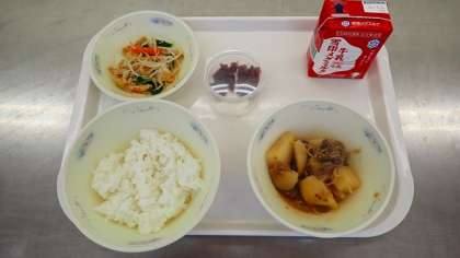 「肉じゃが」は,牛肉もじゃがいもも味がよく染みており,とてもおいしかったです。「しば漬け」は,すぐき,千枚漬けと並んで京都の三大漬物といわれる漬物です。あまり食べなれない子にとっては少し食べにくかったかもしれませんが,ごはんと一緒に食べるととてもおいしく,いつもよりたくさんごはんを食べることができたかもしれないですね!