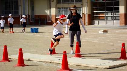 1年生は,体育の学習でスポーツフェスティバルに向けた練習に取り組んでいます。