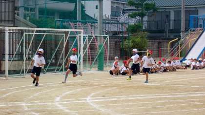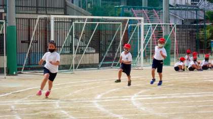 2年生は,体育の学習でスポーツフェスティバルに向けた練習に取り組んでいます。
