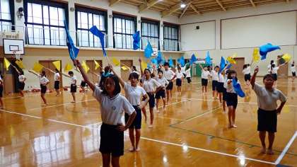 今日はあいにくの雨で,運動場が使えません。本番と同じ形でリハーサルをすることはできませんでしたが,体育館で動きを確かめました。