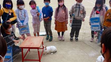 前回に続き,2羽のうさぎを詳しく観察します。今日は,うさぎのことならなんでも知っている校長先生から,うさぎについてお話を聞きました。茶豆と黒豆の小さい頃の写真も見せてくださいました。