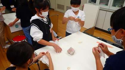 たまねぎの皮を袋に詰めたら,鍋で煮詰めていきます。鍋の中のお湯の色が,どんどん変わっていきます。