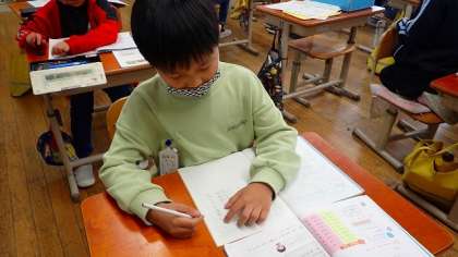 今日は,1の段の九九について考えました。1の段の九九をつくった後は,自分で唱えて覚える時間です。「1の段は簡単や!」という声が聞こえてきました。