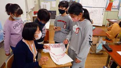 4年生は,はじめての木版画に取り組みます。自然の生き物である動物や植物を題材にして作品の下絵を描いています。どんな作品になるか楽しみですね。