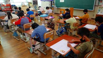 2年生は,国語の漢字テストをしています。