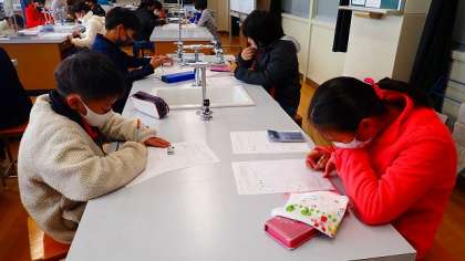 5年生は,理科の「ふりこの動き」の学習をしています。