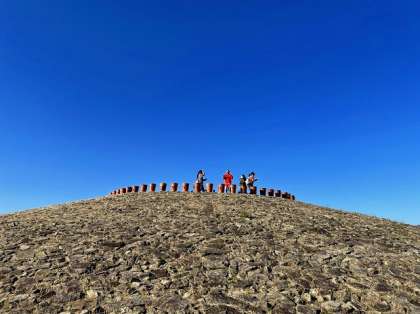 グループで古墳の見学をしています。社会科の教科書や資料集でしか古墳を知らなかった子もいるのではないかと思います。実際に見学することで,古墳の大きさを体験してほしいと思います。
