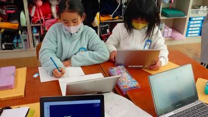 3年生は,総合的な学習の時間で乾隆学区の魅力について伝える準備をしています。