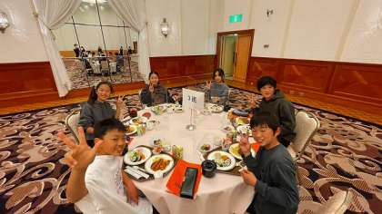 楽しい夕食時間ですが,食べる間は「黙食」です。ルールを守っておいしくいただきました。