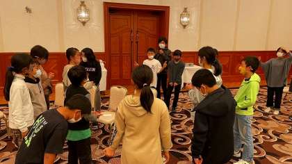 夕食の後は,「レクレーションタイム」を行いました。レク係の子どもたちが進行を担当し,みんなで楽しく盛り上がりました。